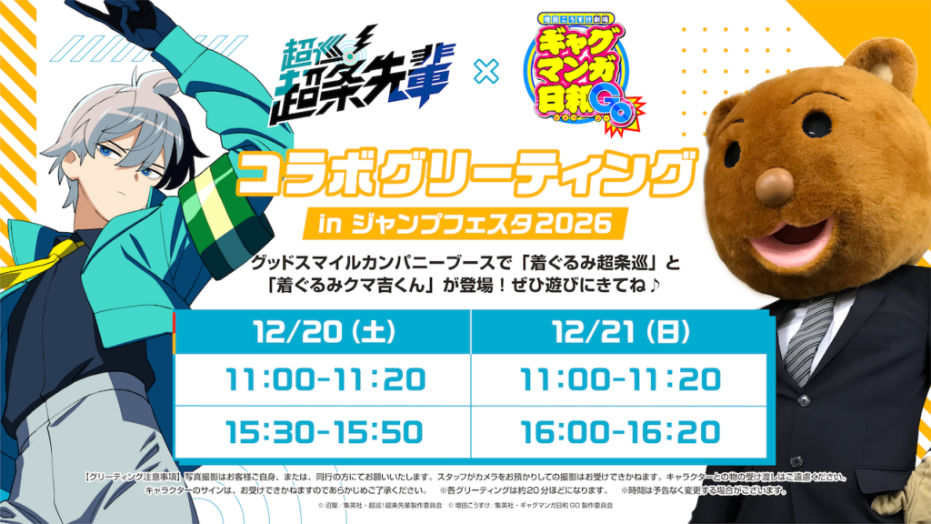 2025年12月20日(土)・21日(日)に開催される「ジャンプフェスタ2026」に『ギャグマンガ日和GO』の参加が決定!
